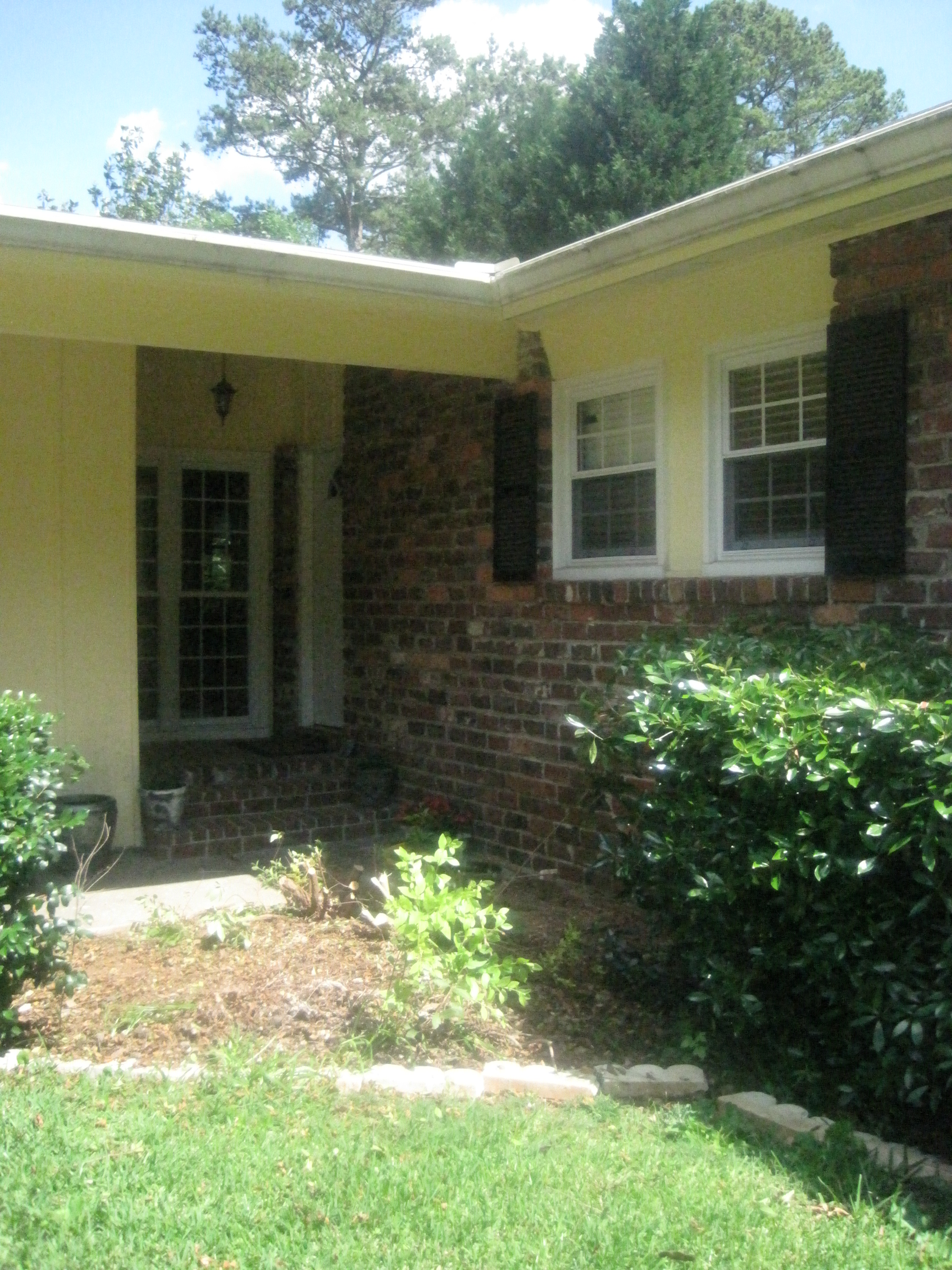 Moving along…. I have been trying to give this lil old house some curb appeal. The carport, meth shed, and bushes covering the windows weren’t really that inviting…. So, this summer we ripped out all the bushes…. yes red-neck style with a chain and a pick up truck. Don’t worry, we checked to make sure roots weren’t wrapped around pipes. Take mental note of that.