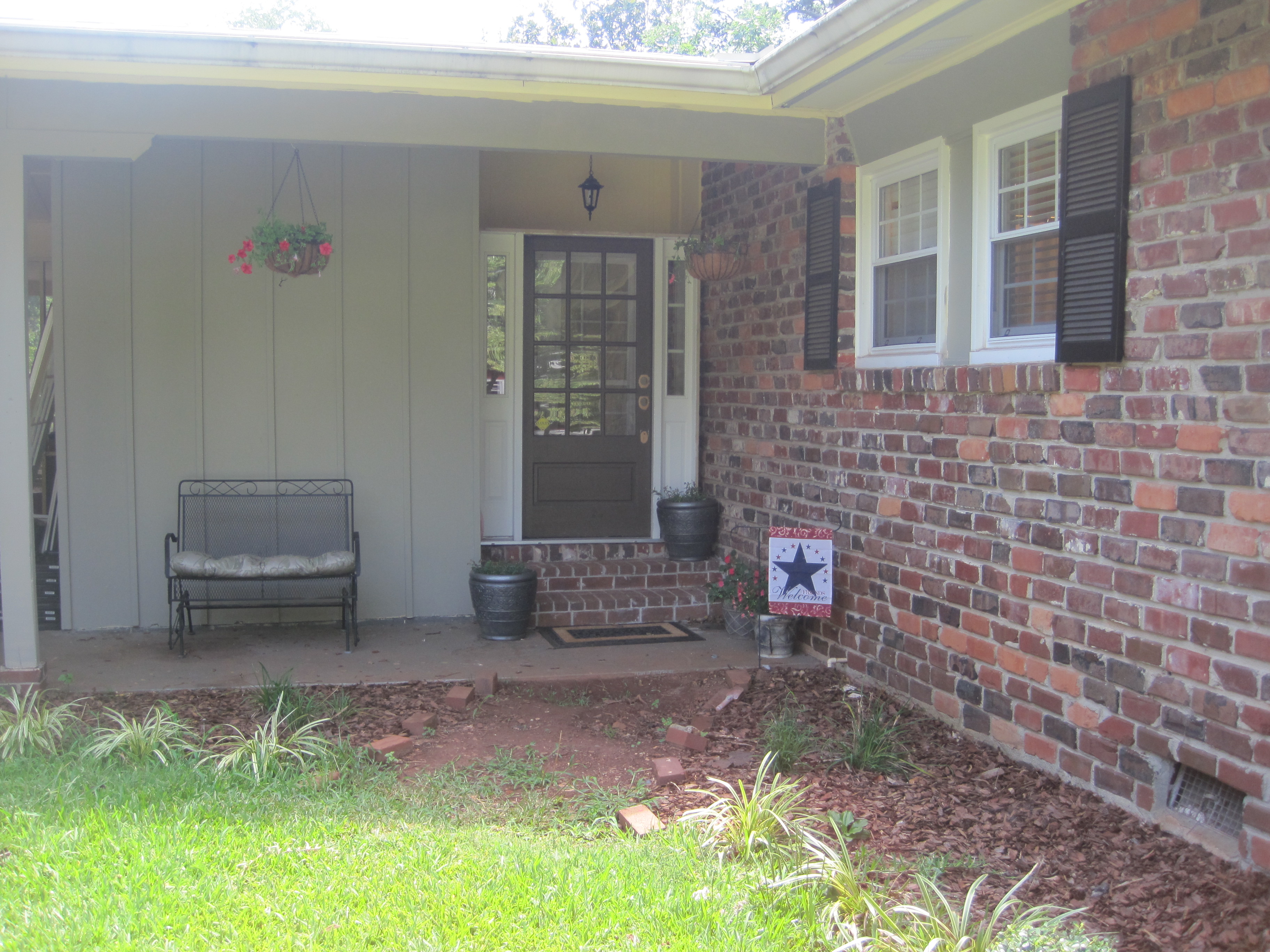 So, after we ripped out the bushes, we found the front door. But a super awkward front door. You would go up steps and just face a huge window and then to the right was the front door. It just did not flow. So, Tim actually had the idea to move the front door flush with the house. (I’ll go into inside details later but basically that space turned into a foyer).
