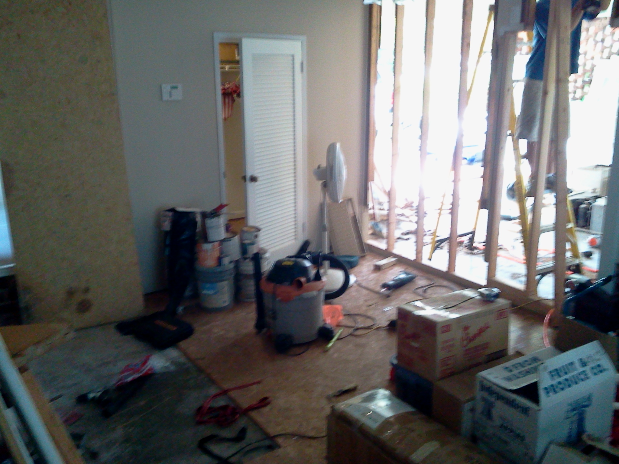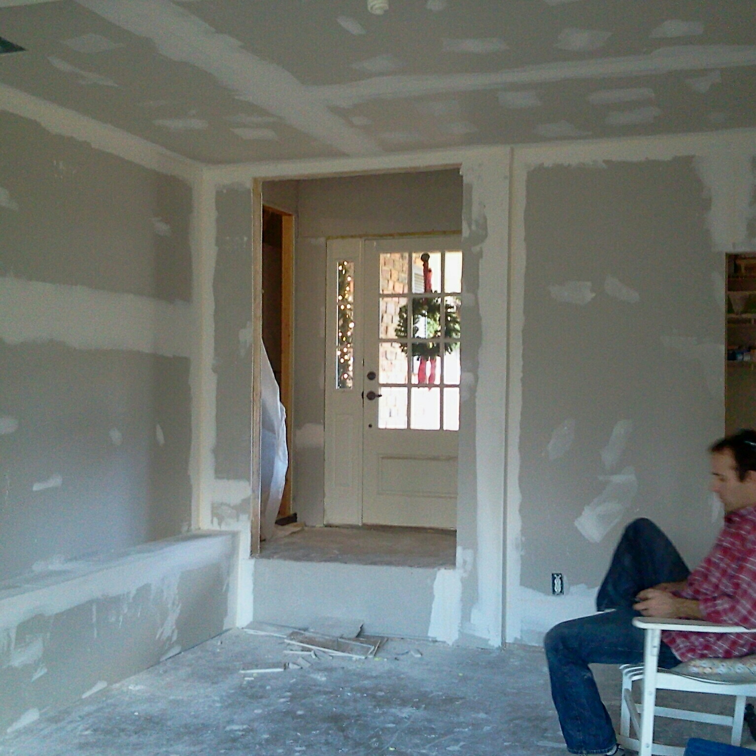 So, we are rolling along here! Good news: we are on budget to complete the whole house renovation for $10k. Bad news: we are so tired! Tim thinks we may throw another $5k at the budget and hire some stuff out if we feel like we are sinking! The roles we take most serious is being a father and mother. We often throw projects to the wayside and go apple picking, to disney world, and this summer to the lake. You kind of have to, to stay sane. Then, we both work right now. Tim full is time and I have squeezed in some event planning jobs somewhere in there. Which I’ve realized our whole life is just one crazy event. One after the next. Anyway, our spirits are high. We are high energy people. We are close. The addition to the home was like renovating a mini house. That is the part we have been working on the longest. The section from the front door over to the left side of the house was all just added on and not finished. Tim has been re-framing, running HVAC to that part of the home, running electrical and plumbing to it because it includes my mudroom, and installing french doors that lead out onto the screened in porch to it. We have come very far with lots of details, but have a ways to go! Still shooting for a Christmas completion. We are going to need lots of coffee, hope, and possibly a miracle to pull it off 😉