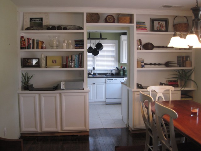 This is our latest and greatest project at Nellie Mae. Before…. it was just a huge blank wall and for the left side, my Christmas tree looked good there for a while! We were in desperate need of storage and these cabinets and built ins saved our life!!