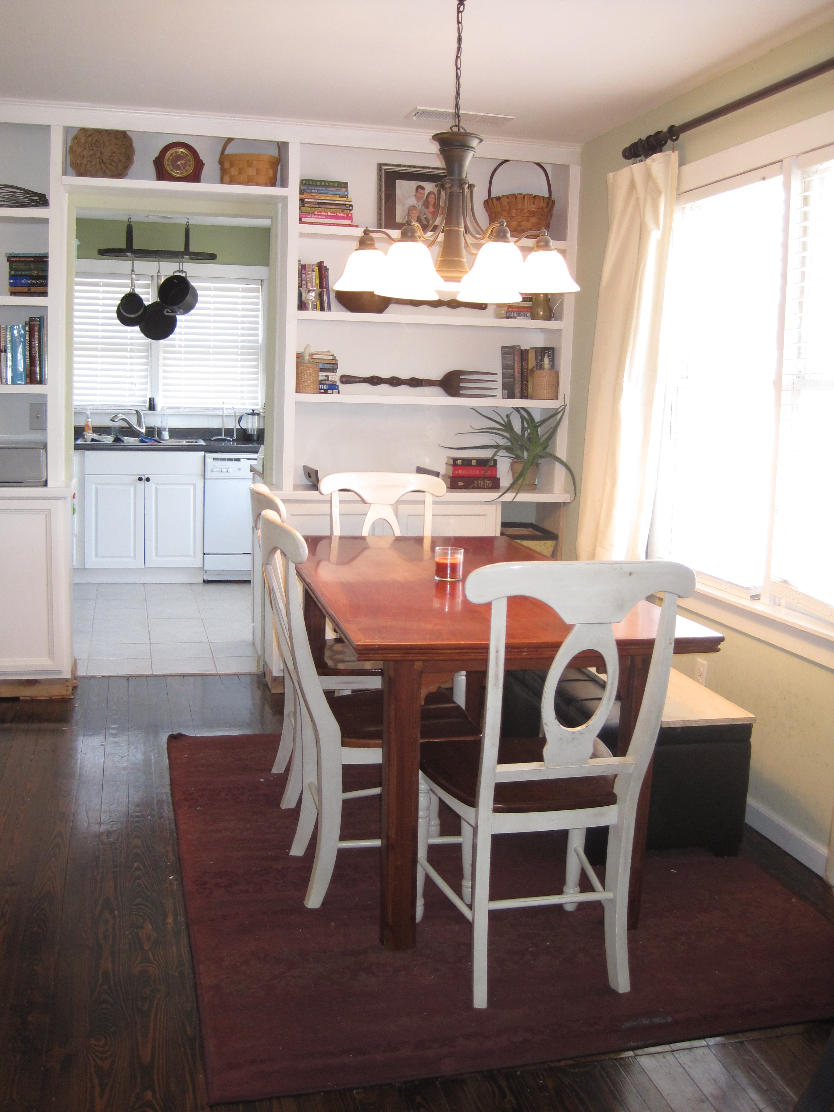 We found the cabinets on craigslist for $40, and the rest of the wood and paint came from Home Depot. I had a 10% off coupon of course. I decorated with everything we already had.