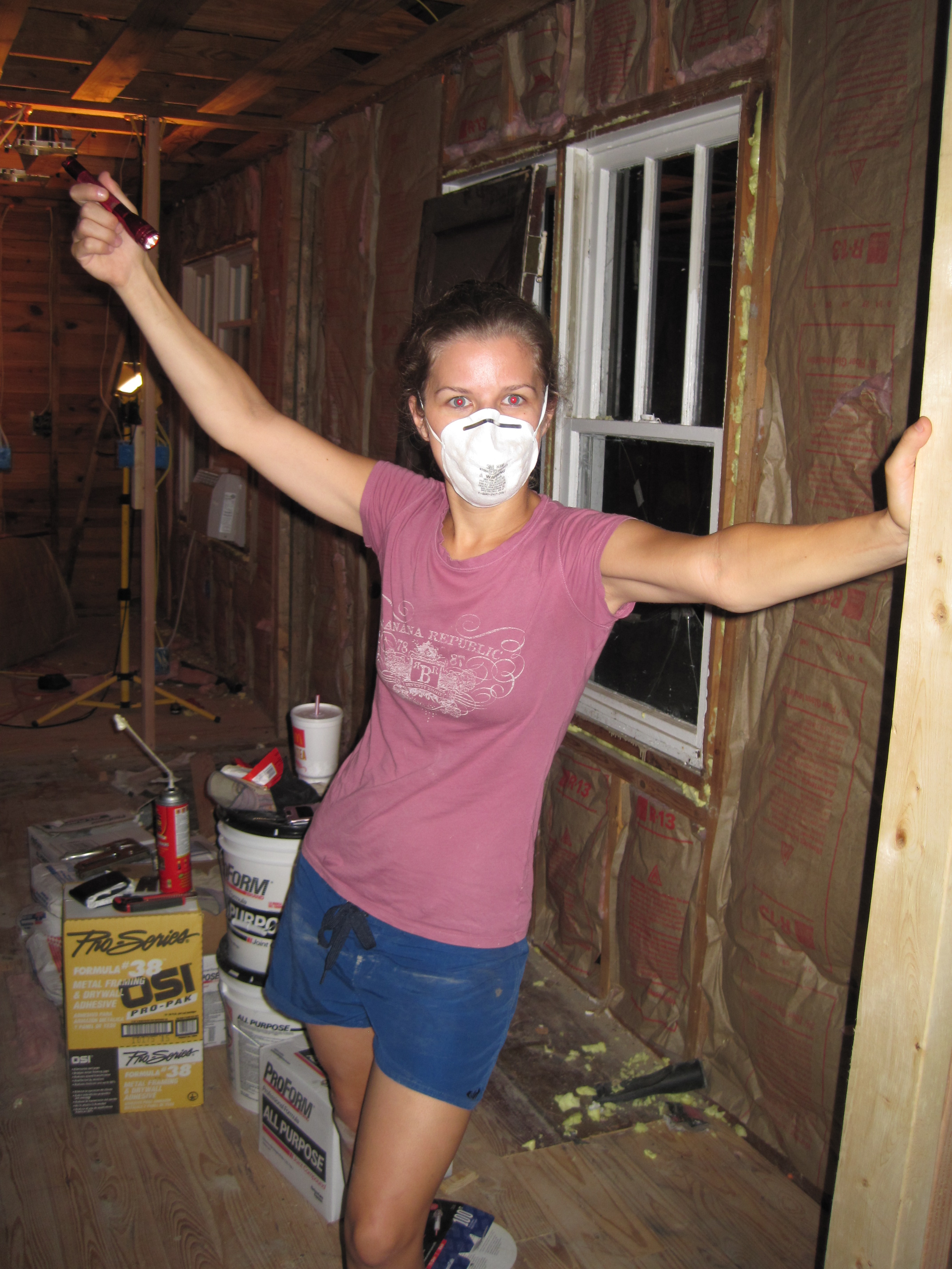 Did I mention we have drywall?? Here is the past week in pictures. We fell a little behind because we had my 10 year reunion this weekend, which was totally worth falling behind for! Anyway, Tim’s cousin Micheal came and helped out with insulation. Bless their hearts because it was over 100 degrees and they had to wear long sleeves and jeans while installing it. Tim also pulled a 27 hour work day on Monday at the house to get ready for the drywall crew on Tuesday morning. I slept 4 hours, but all in all….. we got this darn house ready! We are rested now and getting amped up for the next phase: Restoration and Decoration =) This is obviously my favorite phase. Budget update. We are at $11,000 out of our $15,000 budget. We don’t have much left and I have purchased most of the things that are going into the house. We are thinking if at most, we will be $2,000 off and will hit $17,000. Which isn’t pretty darn shabby to renovate an entire house. We just don’t pay full price for anything. We did hire a drywall crew b/c it would have taken Tim about 3 weeks. They took 3 days. We had a connection so a normal $3000 job was only $1500. We sure do love having friends with businesses. Here are some pics of drywall, and the before and after so far… enjoy!!